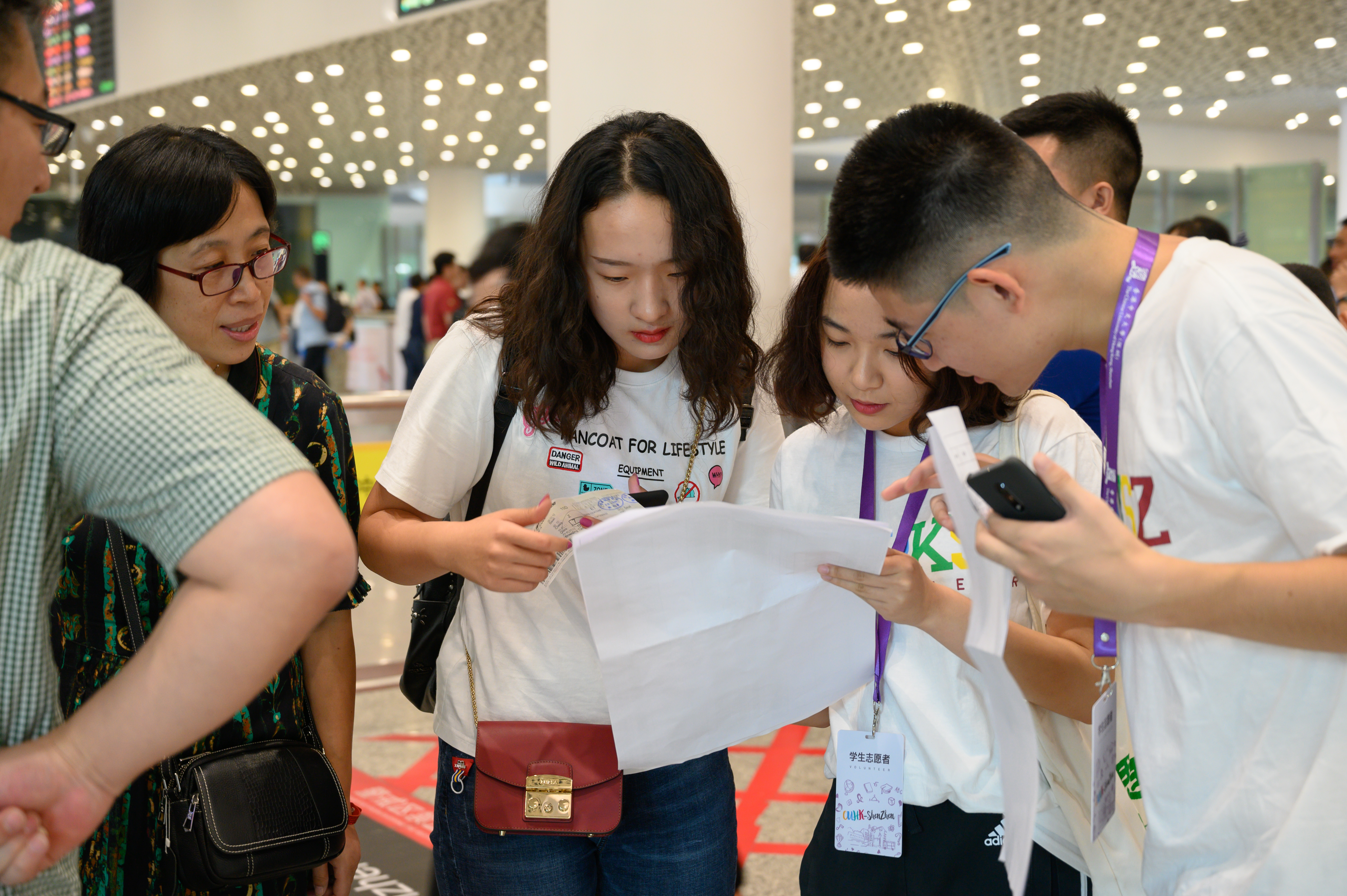 8月28日,香港中文大学(深圳)2019迎新报到日第一天的小欢喜,就是迎接到来自五湖四海的新生。接站志愿者在深圳宝安机场、罗湖火车站、深圳北站指引新生和家长前往巴士处、帮忙搬运行李,安排接送车辆。