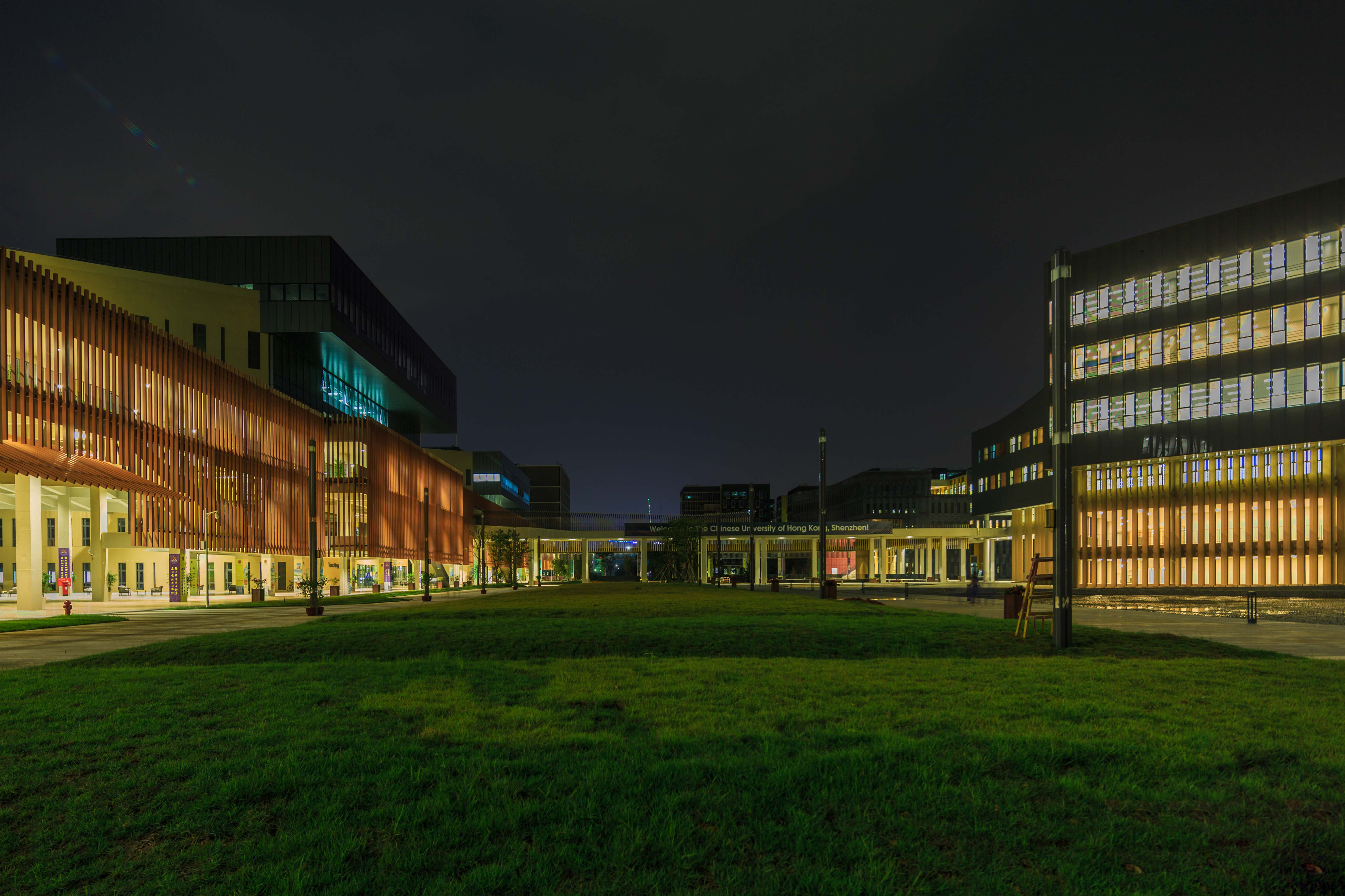 8月30日,港中大(深圳)的新校园就要与大家正式见面啦,一些同学迫不及待地拿起摄像机,按动快门,拍下校园的夜景。