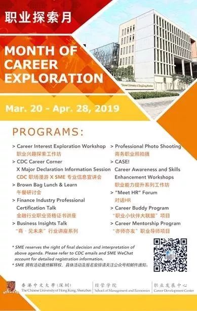 经管学院职业探索月的更多活动,尽请关注后续邮件通知或经管学院微信公众号。